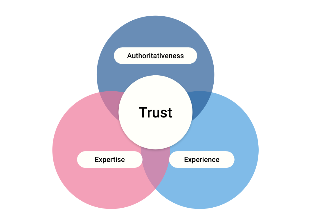 Experience, Expertise, and Authority all bubble up to higher levels of trustworthiness, which is stated as the most important criterion by Google.