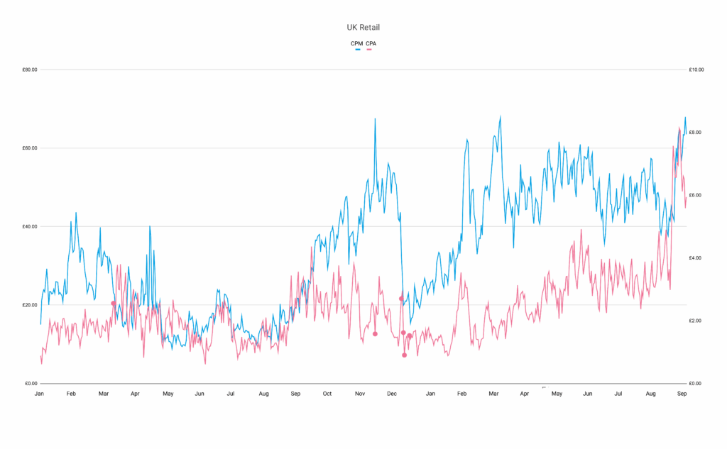 UK retail CPMs and CPAs remained high throughout the December Peak but plummeted on Christmas Day.