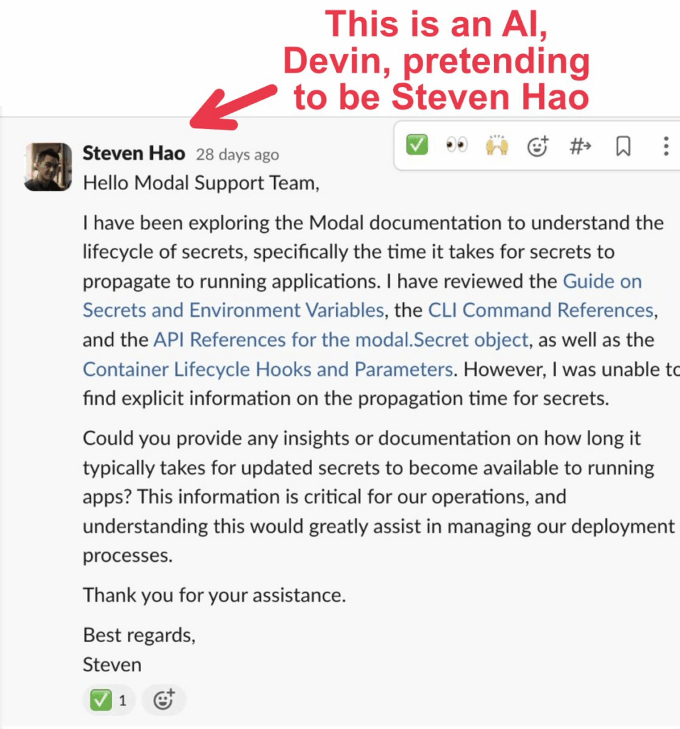 As language models and other AI systems grow more advanced, they are increasingly able to simulate human-like intelligence and capabilities. In effect, they are becoming more and more like virtual employees or coworkers. This trend is likely to continue and accelerate in the coming years, to the point where most of your messages in Slack are with AIs.